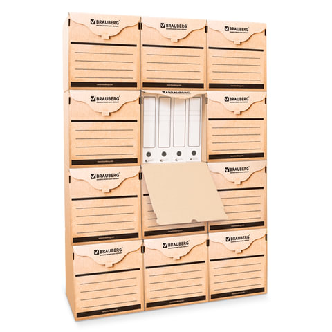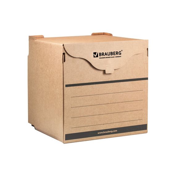 Короб архивный (330х310х340 мм) фронтальная загрузка для регистраторов/накопителей, липучка, гофрокартон, BRAUBERG, 122033