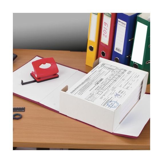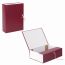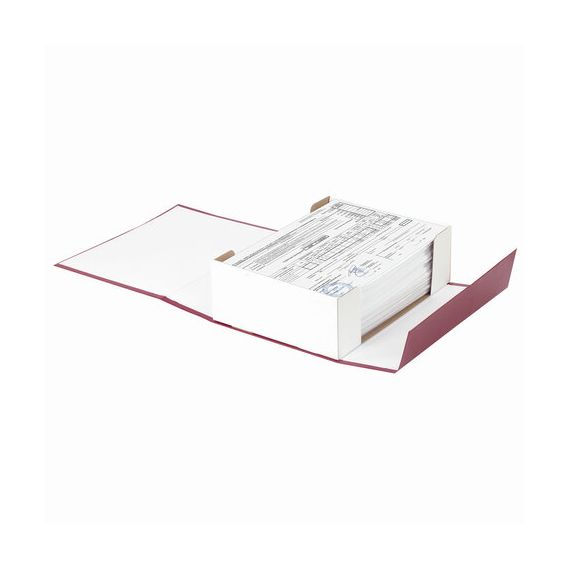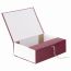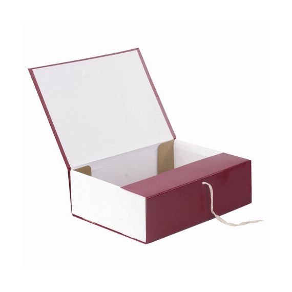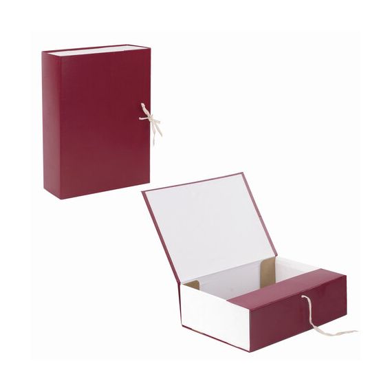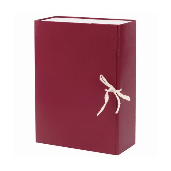 Изделие бордового цвета вмещает до 900 листов и выдерживает до 5,2 кг. Размер (ВхШхГ) – 330х240х100 мм. Имеется откидная крышка. Короб снабжен 2 хлопчатобумажными завязками.