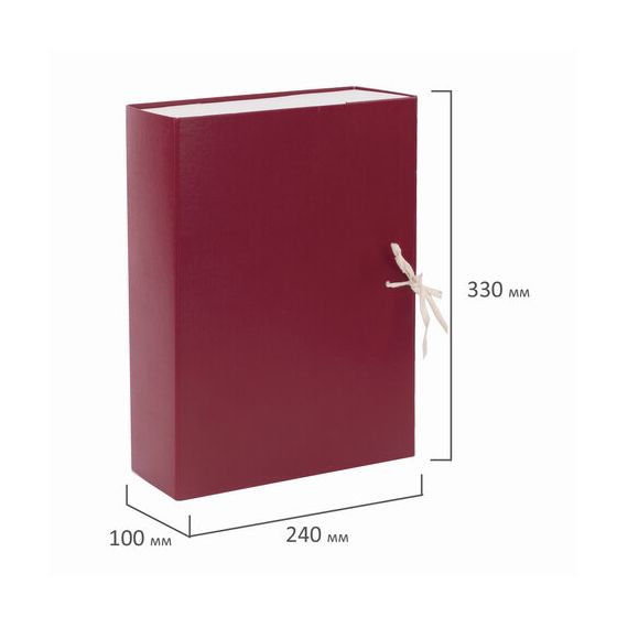 Короб архивный А4 (240х330 мм), 100 мм, 2 завязки, бумвинил, до 900 листов, бордовый, BRAUBERG, 122805