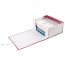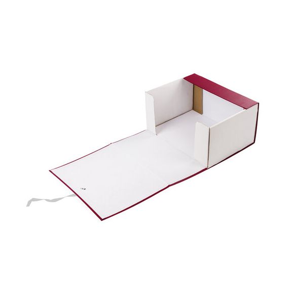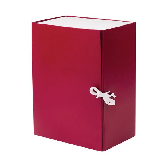 Изделие бордового цвета вмещает до 1400 листов и выдерживает до 7,3 кг. Размер (ВхШхГ) – 330х240х150 мм. Имеется откидная крышка. Короб снабжен 2 хлопчатобумажными завязками.