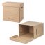 Толщина картона - 3 мм. Вмещает до 3200 листов. Продуманная конструкция и усиленное двойное дно позволяет переносить грузы весом до 30 кг. Размер короба - 32,5x23,5x32,5 см. Имеет откидную крышку и отверстия по бокам для удобства переноски. Поставляется в разобранном виде.