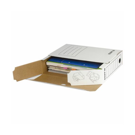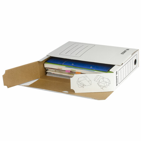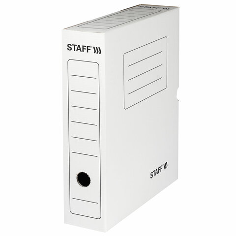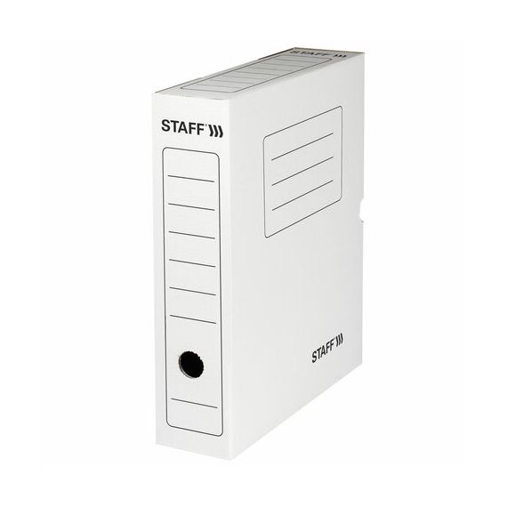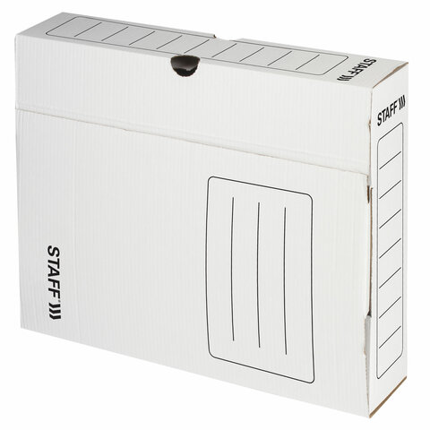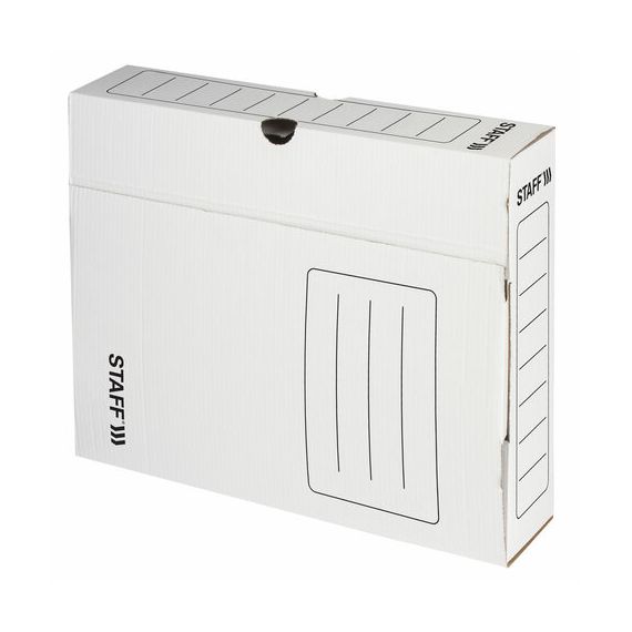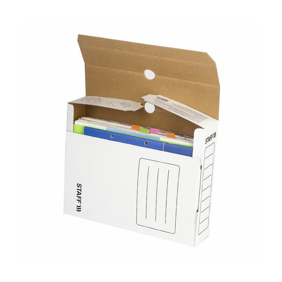 Короб архивный с клапаном А4 (260х325 мм), 75 мм, до 700 листов, микрогофрокартон, БЕЛЫЙ, STAFF, 128858
