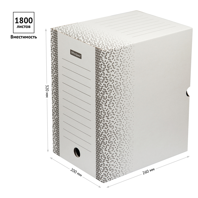 Короб архивный с клапаном OfficeSpace "Standard" плотный, микрогофрокартон, 200мм, белый, до 1800л.