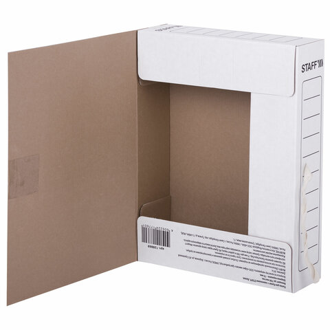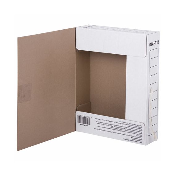 Папка архивная с завязками А4 (325х250 мм), 75 мм, до 700 листов, микрогофрокартон, БЕЛАЯ, STAFF