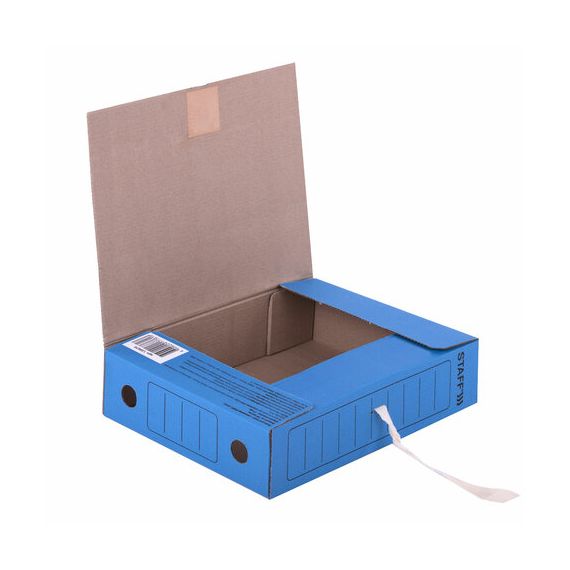 Папка архивная с завязками А4 (325х250 мм), 75 мм, до 700 листов, микрогофрокартон, СИНЯЯ, STAFF