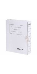 Предназначена для документов формата А4 и вмещает до 900 листов. Высота папки составляет 325 мм, ширина - 250 мм, а ширина корешка - 100 мм. Имеет повышенную прочность за счет использования качественного микрогофрокартона. Спокойный белый цвет архивной папки не будет отвлекать от рабочего процесса