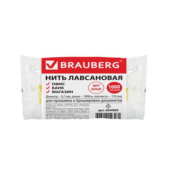 Лавсановая нить BRAUBERG применяется для прошивки и брошюровки документов в банках и офисах. Подходит для всех типов ручных мешкозашивочных машинок.