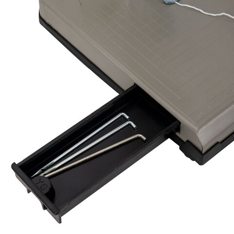Модель оснащена сабельным резаком для бумаги с рабочей поверхностью для резки 17х20 см, способным разрезать до 10 листов.