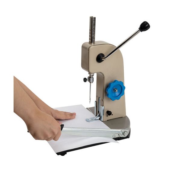 Переплетчик CROMEX "ЛТС-2" позволяет вручную прошивать документы для их надежного скрепления. С его помощью можно выполнить любое число отверстий параллельно корешку. При этом рекомендовано использовать 3-4 отверстия для наиболее качественной прошивки. Аппарат позволяет самостоятельно отрегулировать расстояние от края. Станок для архивного переплета "ЛТС-2" способен сшивать до 150 листов. Благодаря этому можно легко соединить достаточно объемные пачки документации. Устройство снабжено резаком сабельного типа.