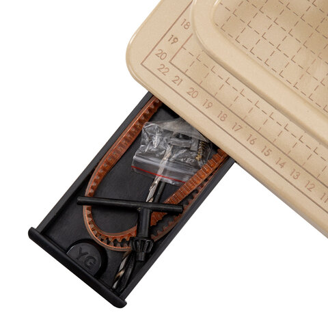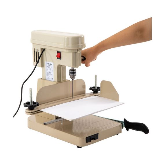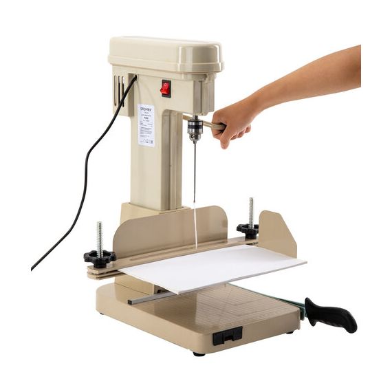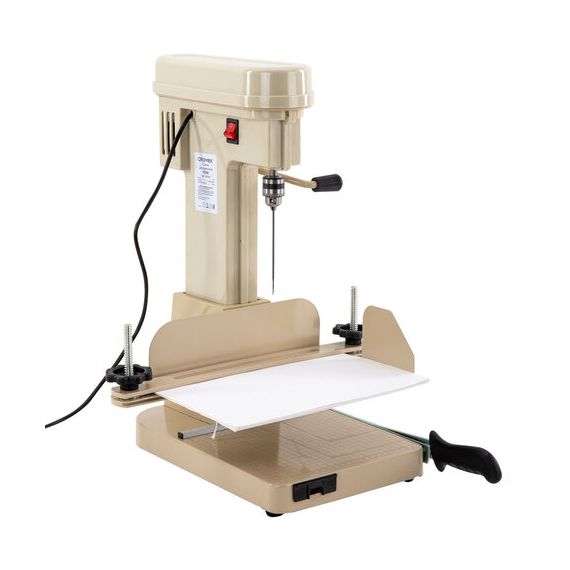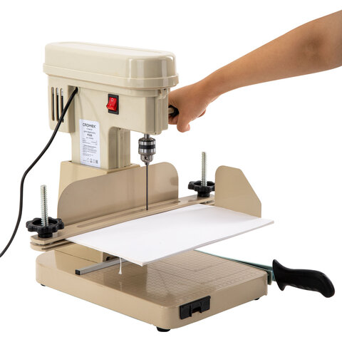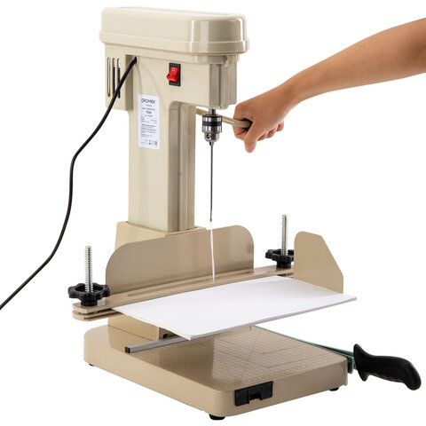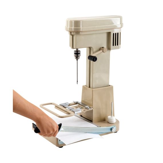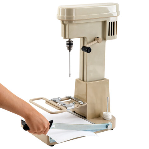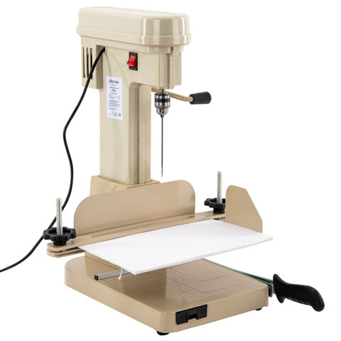 Благодаря мотору мощностью 250 Вт станок способен сверлить и прошивать стопу бумаги до 100 мм (950 листов). Струбцина-лоток позволяет сформировать пачку бумаг и удерживать их вместе для точного и равномерного расположения листов.