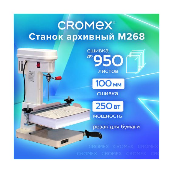 Станок для архивного переплета CROMEX (КРОМЕКС) M268, 250 Вт, с лотком, сшивка до 100 мм (950 листов), 532908