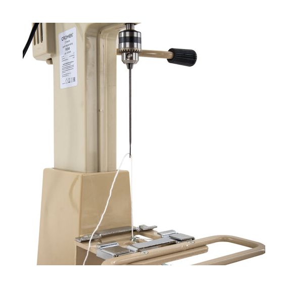 Принцип работы станка для архивного переплета документов CROMEX "M268" заключается в совмещении процесса сверления пачки бумаги (тома) с помощью шила с режущей кромкой и протягивания нити сквозь образовавшееся отверстие. При этом существует возможность использования обычного сверла диаметром 4-5 мм для сверления наиболее толстых папок и последующей прошивки пачки бумаги вручную с помощью иглы для переплетных работ. Использование данного переплетного оборудования повышает эффективность процесса сшива документов, а также позволяет экономить средства за счет переплета архивных документов без привлечения сторонних специалистов.