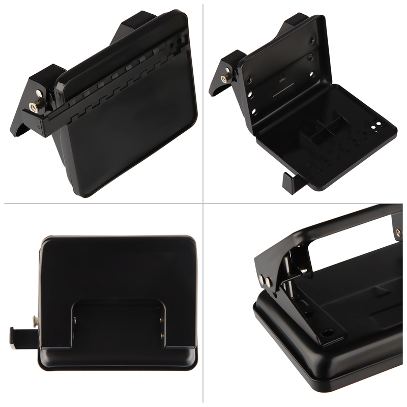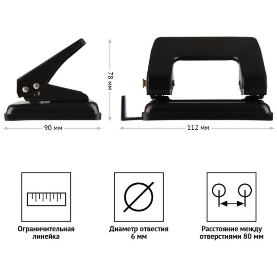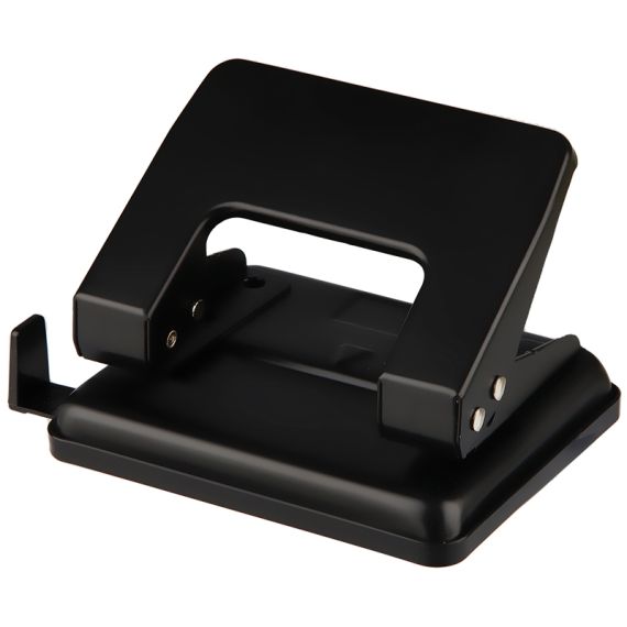 Дырокол металлический, пробивная мощность до 20 л., цвет корпуса - черный, с ограничительной линейкой