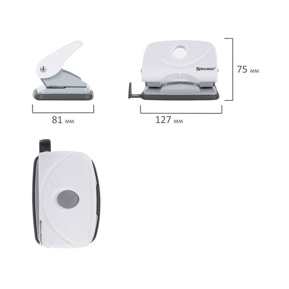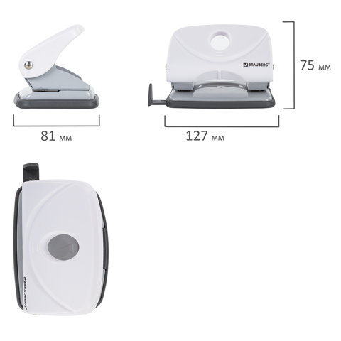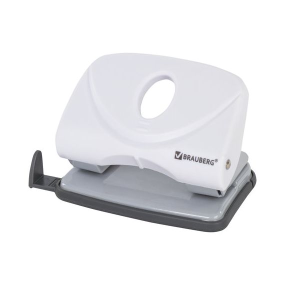 Дырокол BRAUBERG "Original" способен пробить за один раз 20 листов бумаги. Стандартное количество пробиваемых отверстий - 2, диаметр каждого - 6 мм. Благодаря расстоянию между отверстиями в 8 см проколотые дыроколом листы могут храниться в папке идеально ровно и не мяться. Когда будет завершен отчетный период, они обычно сшиваются ниткой и снимаются с металлических колец. Метка центрирования поможет ровно разместить листы. Наличие ограничительной линейки позволяет пробить отверстия в нужном месте, что делает возможным сложить документы в папку ровной стопкой. Дырокол оснащен блокиратором для компактного хранения. Текстурная поверхность позволяет рукам не скользить во время работы. Основная задача контейнера для конфетти состоит в сборе мусора, благодаря чему не будет постоянно загрязняться рабочее пространство. Малые размеры делового аксессуара помогут с легкостью разместить на рабочем столе, а классический белый цвет отлично впишется в любой интерьер.