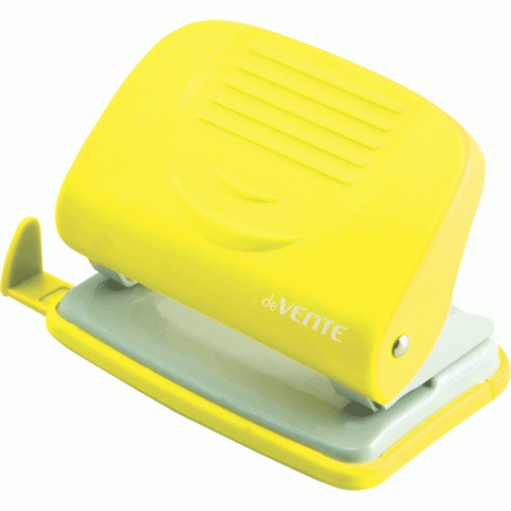 Дырокол "deVENTE. Neon" (20 листов) пластиковый с линейкой, в картонной коробке, неоновый желтый