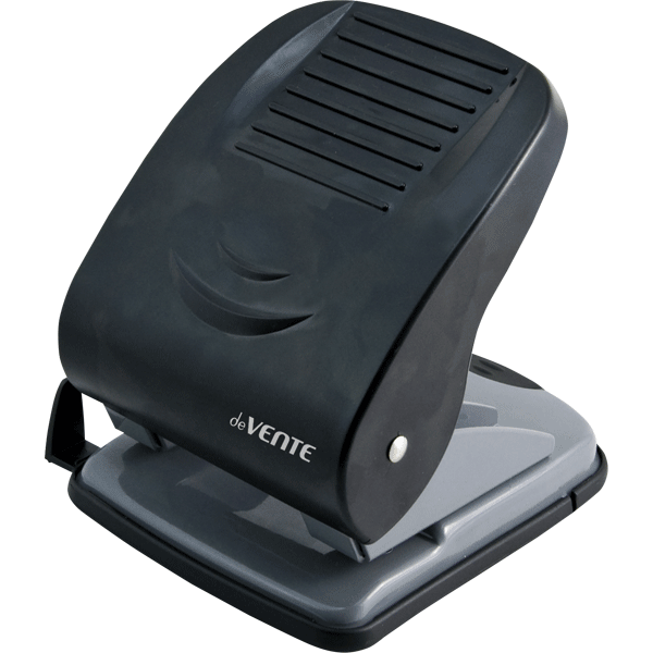 Дырокол "deVENTE. Stripe" (40 листов) пластиковый усиленный корпус, с линейкой, в картонной коробке, черный