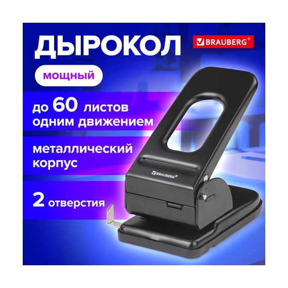 Мощный дырокол BRAUBERG "Heavy duty" пробивает до 60 л. бумаги. Благодаря качественным пробойникам обеспечивает легкое и точное пробивание бумаги. Количество пробиваемых отверстий – 2, диаметр каждого – 6 мм, расстояние между отверстиями – 8 мм. Метка центрирования поможет ровно разместить листы, а ограничительная линейка – пробить отверстия в нужных местах. Оснащен контейнером для сбора мусора и блокиратором для компактного хранения.