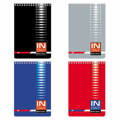 Блокнот А5 146х205 мм, 80 л., гребень, мелованная картонная обложка, клетка, BRAUBERG, "INDAY", ассо