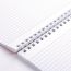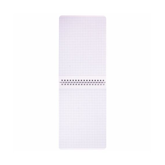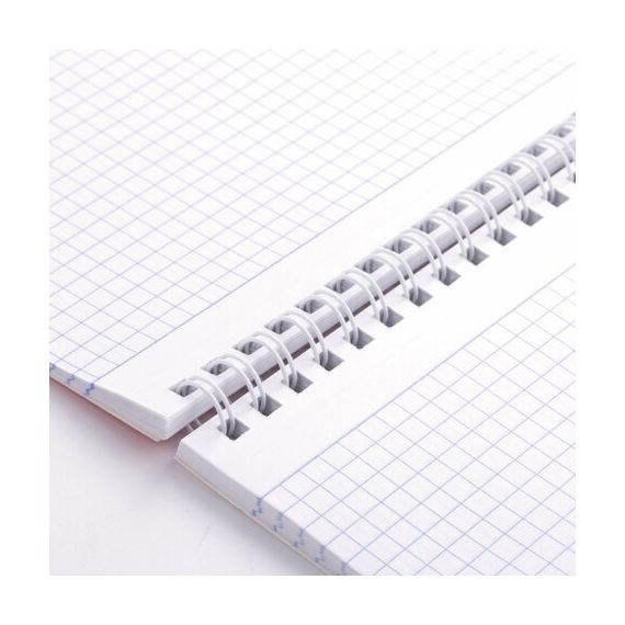 Блокнот формата А5 на евроспирали содержит 80 листов с линовкой в клетку, что позволяет зафиксировать большой объем нужной информации. Имеет верхнее расположение переплета. Обложка выполнена из мелованного картона плотностью 200 г/м2. Внутренний блок состоит из белой офсетной бумаги плотностью 60 г/м2.
