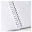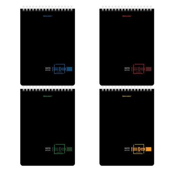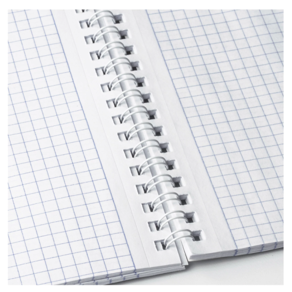 Блокнот формата А5 на евроспирали содержит 80 листов с линовкой в клетку, что позволяет зафиксировать большой объем нужной информации и дает возможность аккуратно заполнить цифровые значения, а также нанести чертежные зарисовки. Гребень расположен сверху. Обложка выполнена из мелованного картона плотностью 190 г/м2. Внутренний блок состоит из белой офсетной бумаги плотностью 60 г/м2.