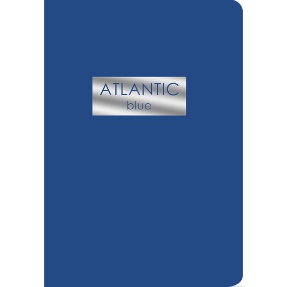 Блокнот А5- 48л. Скрепка. Крепление по длинной стороне. Обл: мел.картон, пантон.печать, ламин.Soft Touch, тисн.фольгой. Бум.оф.60г/м2, Клетка. Скр.угл. Atlantic