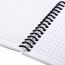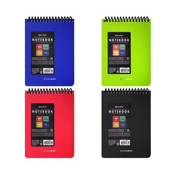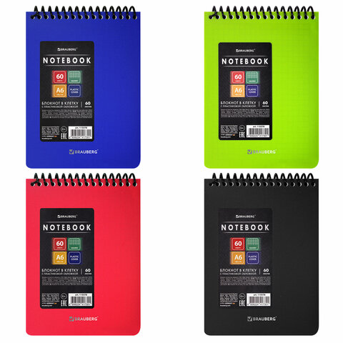 Блокнот формата А6 на спирали содержит 60 листов с линовкой в клетку, что позволяет зафиксировать всю необходимую информацию. Малый формат удобно поместить в кейс или сумку малых габаритов. Имеет верхнее расположение переплета. Обложка выполнена из пластика, что делает блокнот более износоустойчивым. Внутренний блок состоит из белой офсетной бумаги плотностью 70 г/м2.