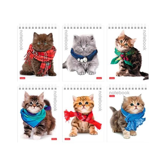 Блокнот МАЛЫЙ ФОРМАТ А6 110х145 мм, 40 л., гребень, лакированная обложка, клетка, HATBER, "Милые Кот