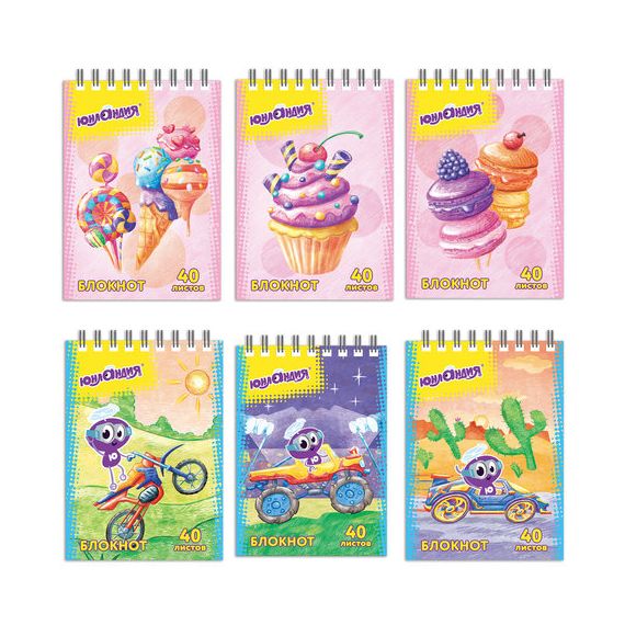 Блокнот МАЛЫЙ ФОРМАТ А7 75х105 мм, 40 л., гребень, картон, клетка, ЮНЛАНДИЯ, "ЮНЛАНДИК"/"СЛАДОСТИ",
