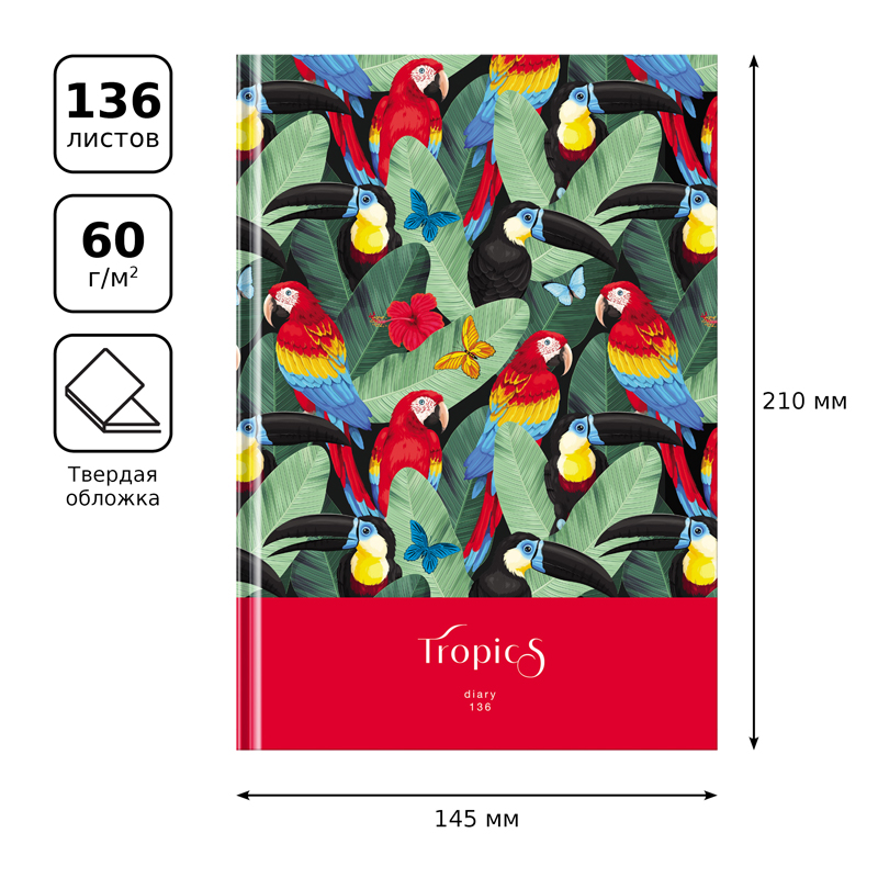 Ежедневник недатированный А5, 136л., 7БЦ BG "Тропический рай", глянцевая ламинация