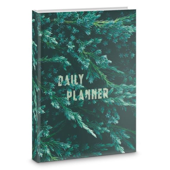 Ежедневник А5. Полудатир., 192 л. 7БЦ, мат. ламинац., выб. лакир. Форзацы – белые. Бумага – оф. 60 г/м2, белая,1 кр. Уп.карт. Лесные узоры