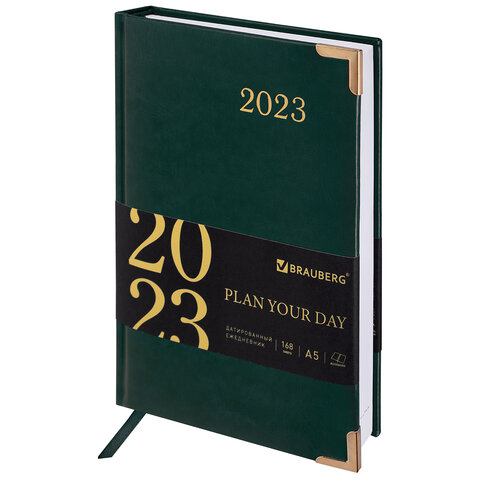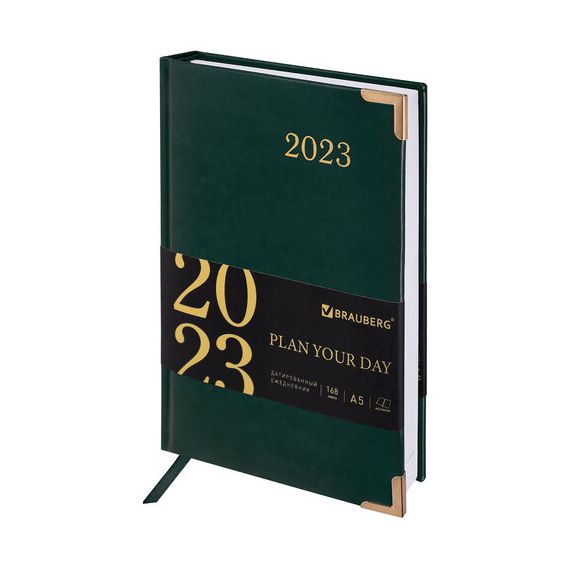 Ежедневник датированный 2023 А5 138x213 мм BRAUBERG "Senator", под кожу, зеленый