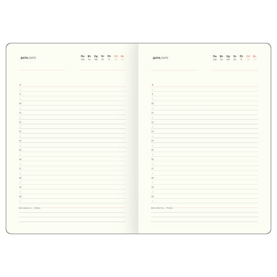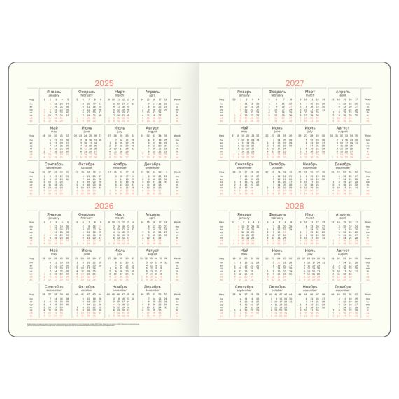 Перфорированные уголки и закладка-ляссе обеспечат комфорт и удобство при использовании. В ежедневнике предусмотрена справочная информация, годовой планер, календарь и другие полезные сведения. Подходит под персонализацию. Индивидуальная упаковка в пакет.