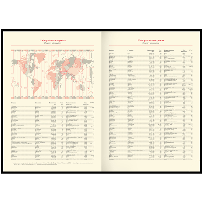 Закладка-ляссе обеспечит комфорт и удобство при использовании ежедневника. Внутри на форзацах содержатся географические карты России и мира и справочные материалы. Недатированный ежедневник подходит под персонализацию.