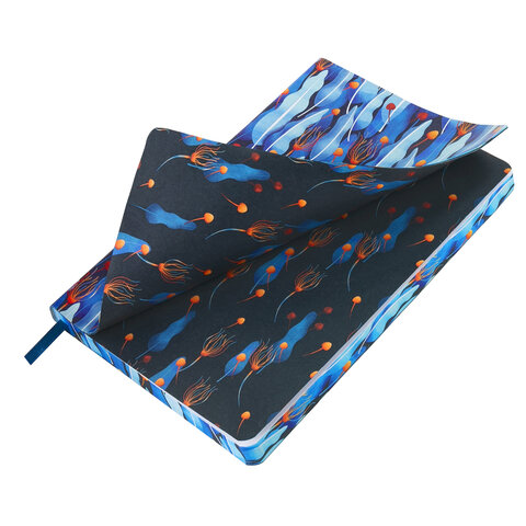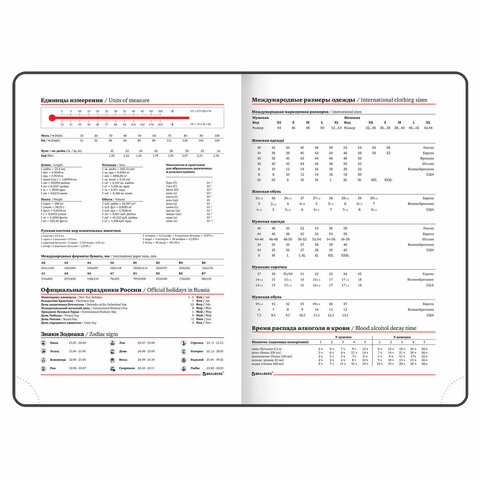Внутренний блок включает 136 листов белой бумаги плотностью 70 г/м2. Благодаря стандартному формату А5 ежедневник удобно использовать как в офисе, так и на выездных деловых встречах. Интегральная (мягкая) обложка с полноцветной печатью делает ежедневник неповторимым и запоминающимся. Срез ежедневника прокрашен, что придает ему особый шарм. Дополнением является закладка-ляссе, с помощью которой можно быстро открыть ежедневник на нужной странице.
