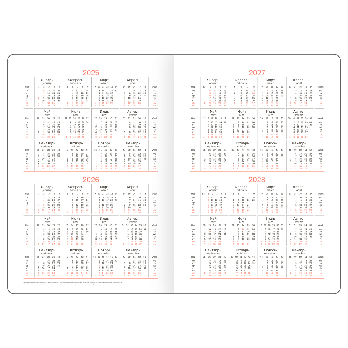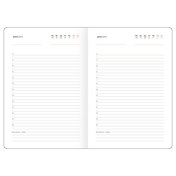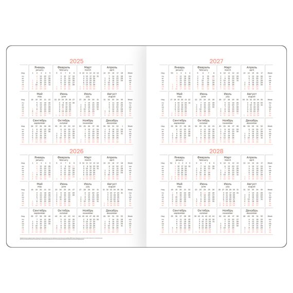Перфорированные уголки и закладка-ляссе обеспечат комфорт и удобство при использовании. В ежедневнике предусмотрена справочная информация, годовой планер, календарь и другие полезные сведения. Подходит под персонализацию. Индивидуальная упаковка в термоусадочную пленку.