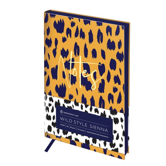 Ежедневник Greenwich Line Vision Wild style Sienna формата B6 имеет ультрамягкую двухслойную обложку, выполненную из высококачественной экокожи. Яркий и неординарный дизайн дополняет синий срез блока. Благодаря такому дизайнерскому решению изделие смотрится необычно и стильно. Внутренний блок имеет 136 листов, которые созданы из кремовой бумаги повышенной плотности 80 г/м2 с пантонной печатью в 2 краски. Greenwich Line Vision Wild style Sienna недатирован, однако отлично подходит под персонализацию.