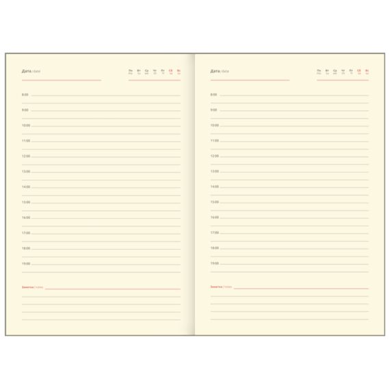 Изделие удобно носить с собой в сумочке или небольшом рюкзаке – его размер 122 на 183 мм. А стильная закладка-ляссе поможет не потерять необходимую страницу ваших рукописей. Ежедневник упакован в индивидуальную упаковку, что гарантирует его целостность и сохранность.