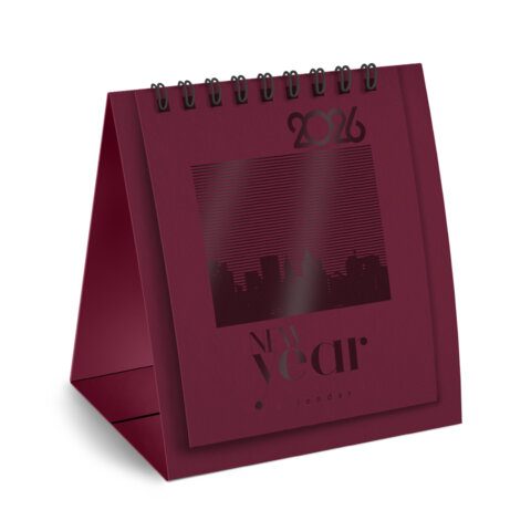 12 листов календарной сетки на мелованной бумаге плотностью 80 г/м2 в 2 краски. Основа изготовлена из импортного картона плотностью 300 г/м2, крашенного с 2-х сторон. Стильная монохромная обложка с дизайном, выполненным УФ-лаком. Размер – 11х12 см. Поставляется в индивидуальной упаковке (пакет с липким краем).