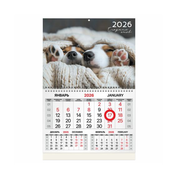 Офисный календарь на 2026 год на гребне. Состоит из 1 блока с календарными сетками на три месяца с магнитным курсором. Блок календаря напечатан на мелованной бумаге плотностью 80 г/м2. Подложка изготовлена из мелованного картона плотностью 250 г/м2. Магнитный курсор-бегунок выделяет текущую дату. Вертикальное расположение. Размер - 33,5х50,3 см.