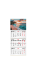 Офисный календарь на 2026 год на гребне. Состоит из 1 блока с календарными сетками на три месяца - предыдущий, текущий и последующий. Блок календаря напечатан на мелованной бумаге плотностью 80 г/м2. Подложка изготовлена из мелованного картона плотностью 280 г/м2. Курсор-бегунок выделяет текущую дату. Вертикальный формат. Размер - 29,5х60 см.