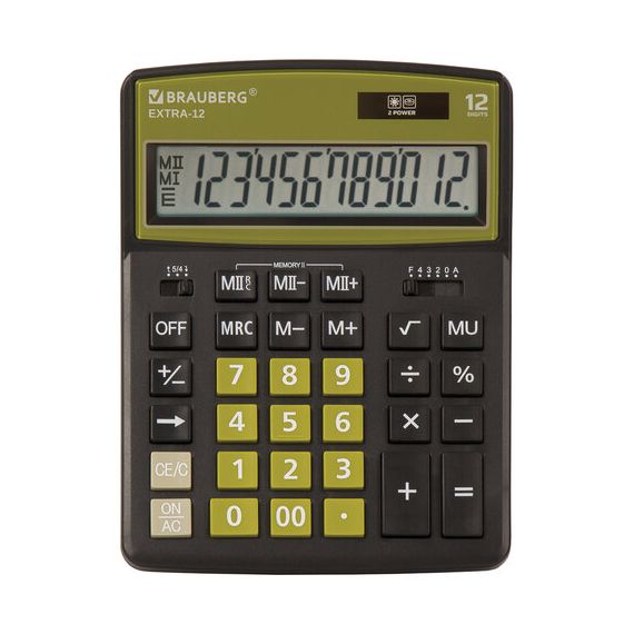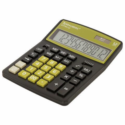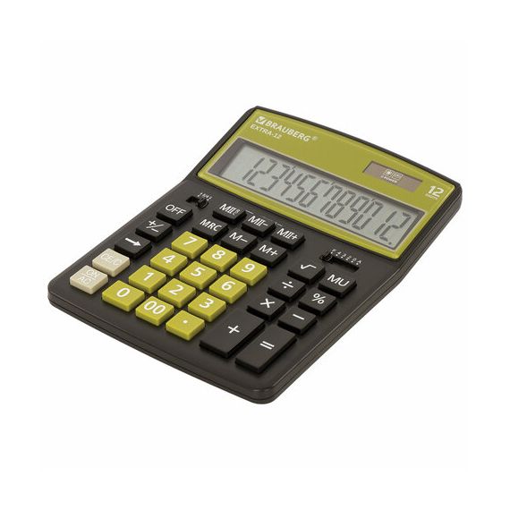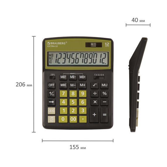 Калькулятор настольный BRAUBERG EXTRA-12-BKOL (206x155 мм), 12 разрядов, двойное питание, ЧЕРНО-ОЛИВ