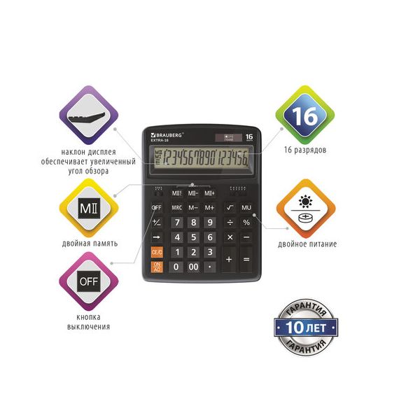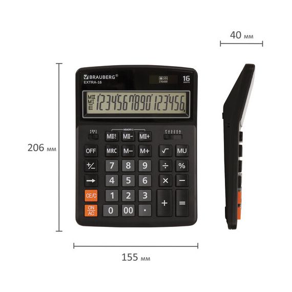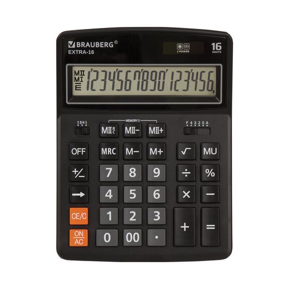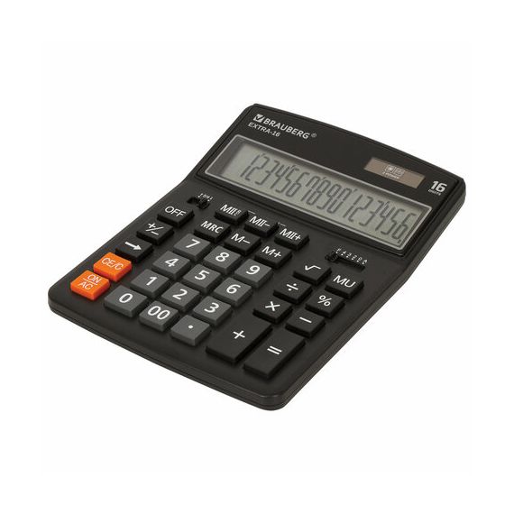 Настольный калькулятор BRAUBERG EXTRA-16-BK. Большой дисплей с увеличенным углом обзора, устойчивый корпус и клавиатура с цветной дифференциацией для эффективной работы с максимальным комфортом.