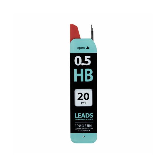 Изготовлены из высококачественных полимерных материалов, обеспечивающих мягкое письмо. Устойчивы к излому. Обладают средней степенью твердости – HB. Длина грифеля составляет 60 мм, а его диаметр - 0,5 мм. 20 штук в упаковке. Поставляются в пластиковой тубе.