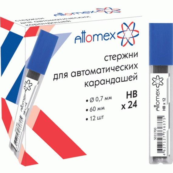 Стержни для карандашей автоматических "Attomex" d=0,7 мм, HB, 12 шт в пластиковом боксе