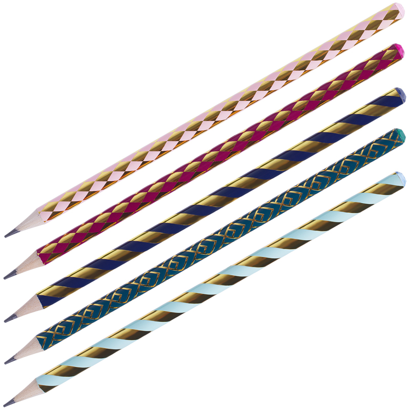 Стильные и элегантные дизайны серии GOLD с золотым фольгированием понравятся ценителям канцелярии, которая привлекает внимание. На корпусе есть штрихкод, а на топе стразы в тон второго цвета печати на карандаше. Карандаши легко затачиваются и идеально подойдут для черчения и рисования. Письмо с карандашами MESHU мягкое и уверенное. Они заточены и уже готовы к работе.