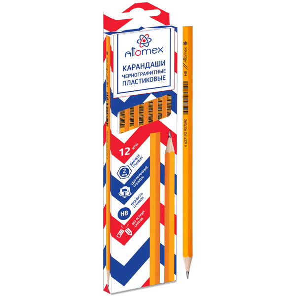 Карандаш чернографитный "Attomex" HB, диаметр грифеля 2 мм, шестигранный без ластика, индивидуальная