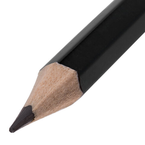 Карандаш изготовлен из дерева высокого качества. Имеет шестигранное сечение. Карандаш длиной 176 мм легко точится и не крошится. Твердость грифеля 2B. Диаметр грифеля - 2,05 мм. Выполнен в черном цвете. Поставляется заточенным.
