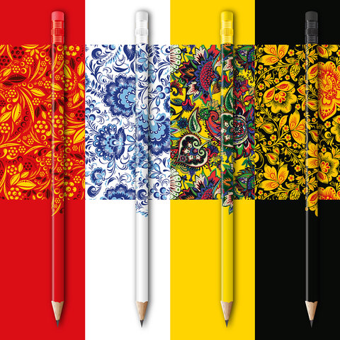 Каждый карандаш имеет индивидуальный штрих-код. Легко затачивается, максимально устойчив к повреждениям. Изготовлен из дерева высокого качества. Имеет круглое сечение и оснащен ластиком. Карандаш длиной 190 мм обладает средней степенью твердости – HB. Корпус покрыт цветной печатью ассорти в 4 дизайнах. Поставляется заточенным в пластиковой тубе по 72 штуки.