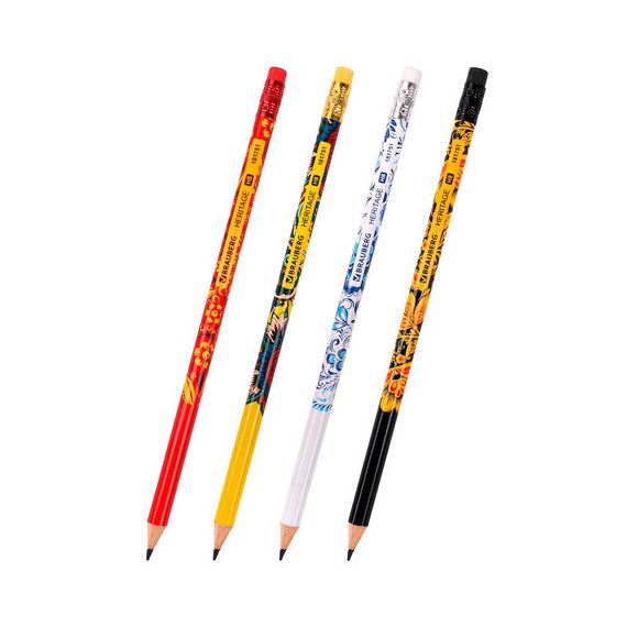 Карандаш чернографитный BRAUBERG "HERITAGE", 1 шт., HB, с ластиком, корпус ассорти*
