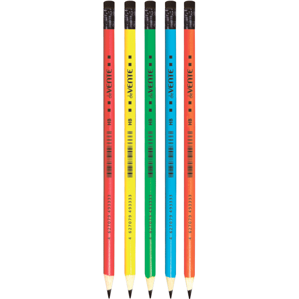 Карандаш чернографитный "deVENTE" HB, диаметр грифеля 1,85 мм, круглый, с ластиком, индивидуальная маркировка, цвета корпуса неоновые ассорти